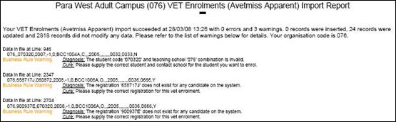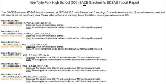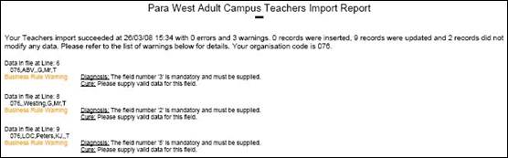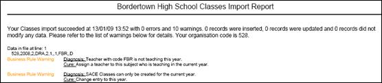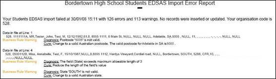 5. If the data format or contents are not compatible with Schools Online an Import error report will be generated. Read the report and resolve the issues with the data before reimporting the file.