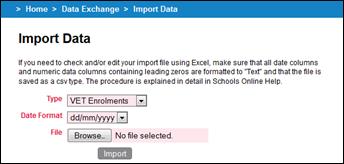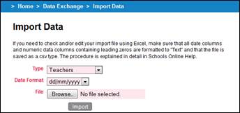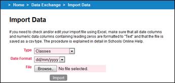 · We strongly recommend that imports should be performed by just one staff member with administrative rights to Schools Online.